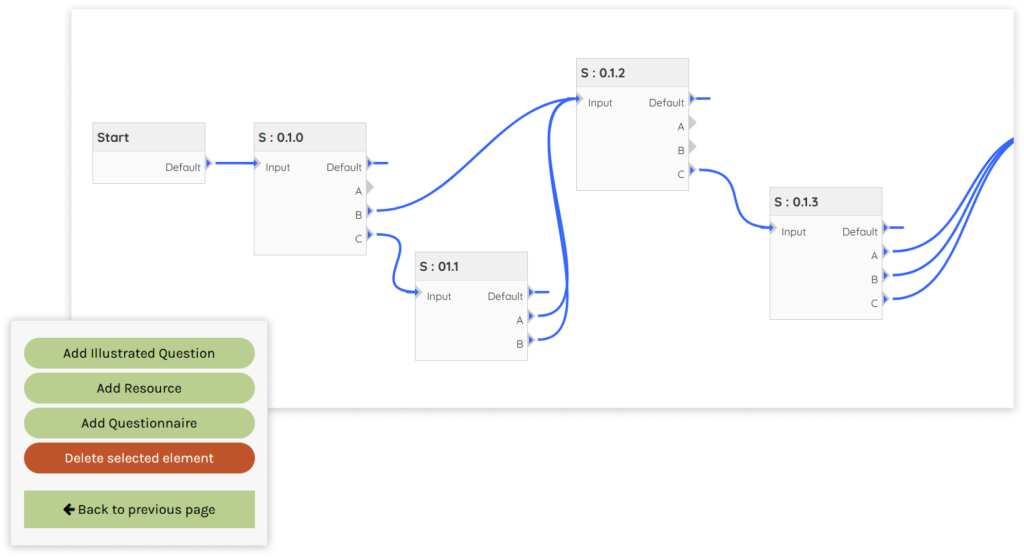 Game creators are given access to create games that consist of several scenes. Each scene is represented in GenaGame by a series of digital resources (PDF, video or image), multiple choices questions and questionnaires.